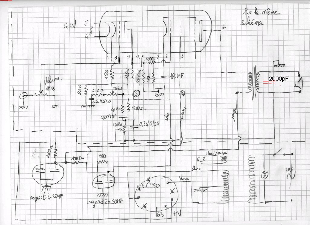 Gaffe : il manque dans tous les cas une réf à la masse (= une résistance) devant la grille 1 de chaque pentode, sur ton schéma (en fait, devant la résistance de grille de 1k2)