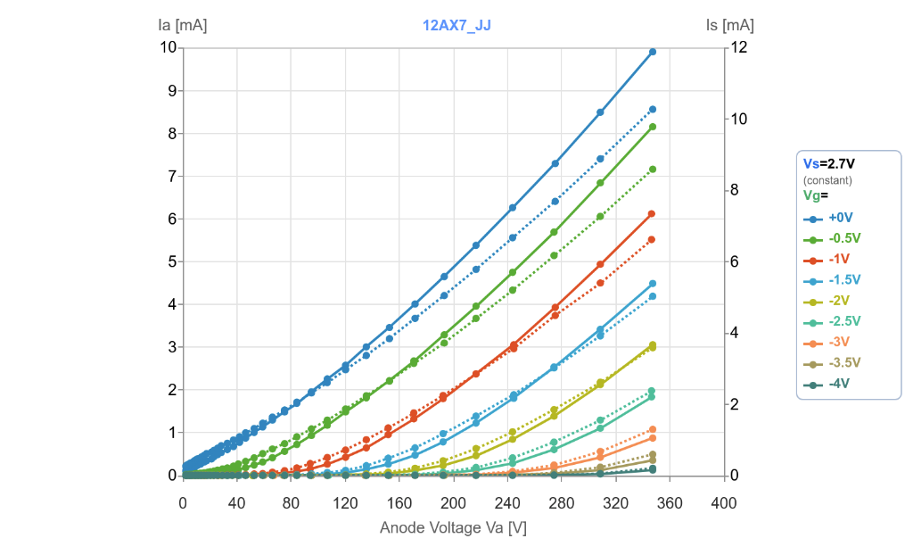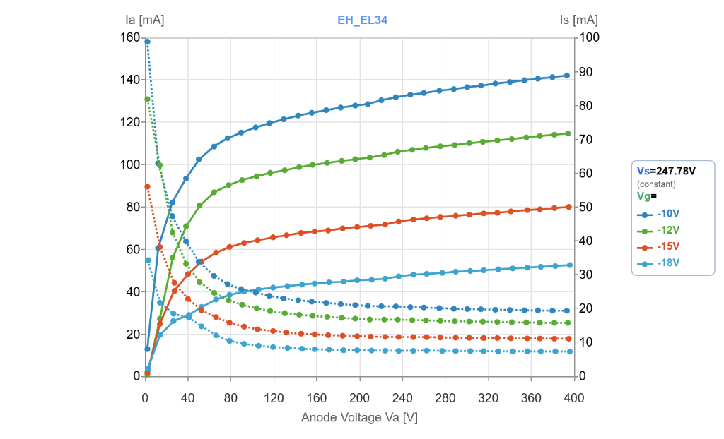 Qd tu traces la courbe à Vg=0 rien qu'avec une El34 tu atteint la limitation, ça n'empêche pas de commencer ton tracé à Vg=-7V mais c'est un peu dommage.