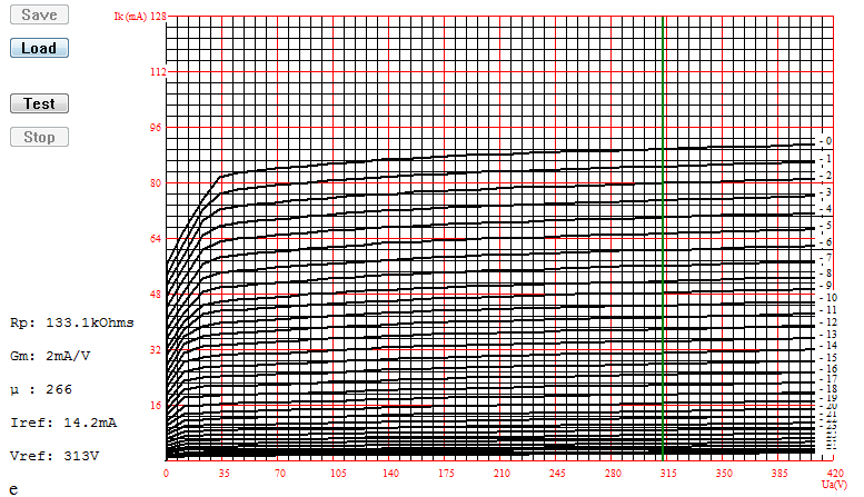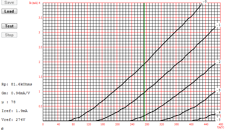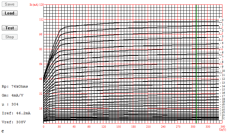 Simplement pour dire que j’ai monté le traceur de radioelec, il doit fonctionner en impulsion, je pense (quoique ?). Je suis intéressé par les courbes et curieux de ce que ça peut donner, ce genre de module. Et puis, je me dis que le jour où ma vieille pétoire Hickok tombe en panne, je serai bien emm*é. Bref, mon montage n’est pas encore totalement opérationnel (je dois encore régler des problèmes avec certaines pentodes de puissance), mais les relevés de courbes entre tube neuf et tube rincé (qui fonctionnent encore un peu néanmoins) sont quand même assez significatifs (je me fie surtout aux courbes, plus qu’aux données calculées à gauche, qui sortent parfois des données un poil bizarre ... mais c’est peut-être moi qui règle mal le bazar). En fait, si on compare les courbes obtenues avec les courbes des datasheet, pour les bonnes lampes, c’est cohérent, pour les lampes rincées, on voit qu’elles sont bien rincées au niveau du courant d'anode !
