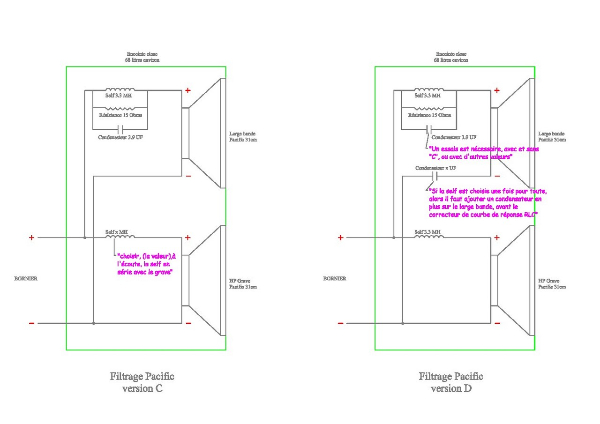 Mise à jour: Pour les tweeters Fane, j’ai trouvé le bon équilibre à mes oreilles, avec en série 7.8 ohms et 0.47 Uf.