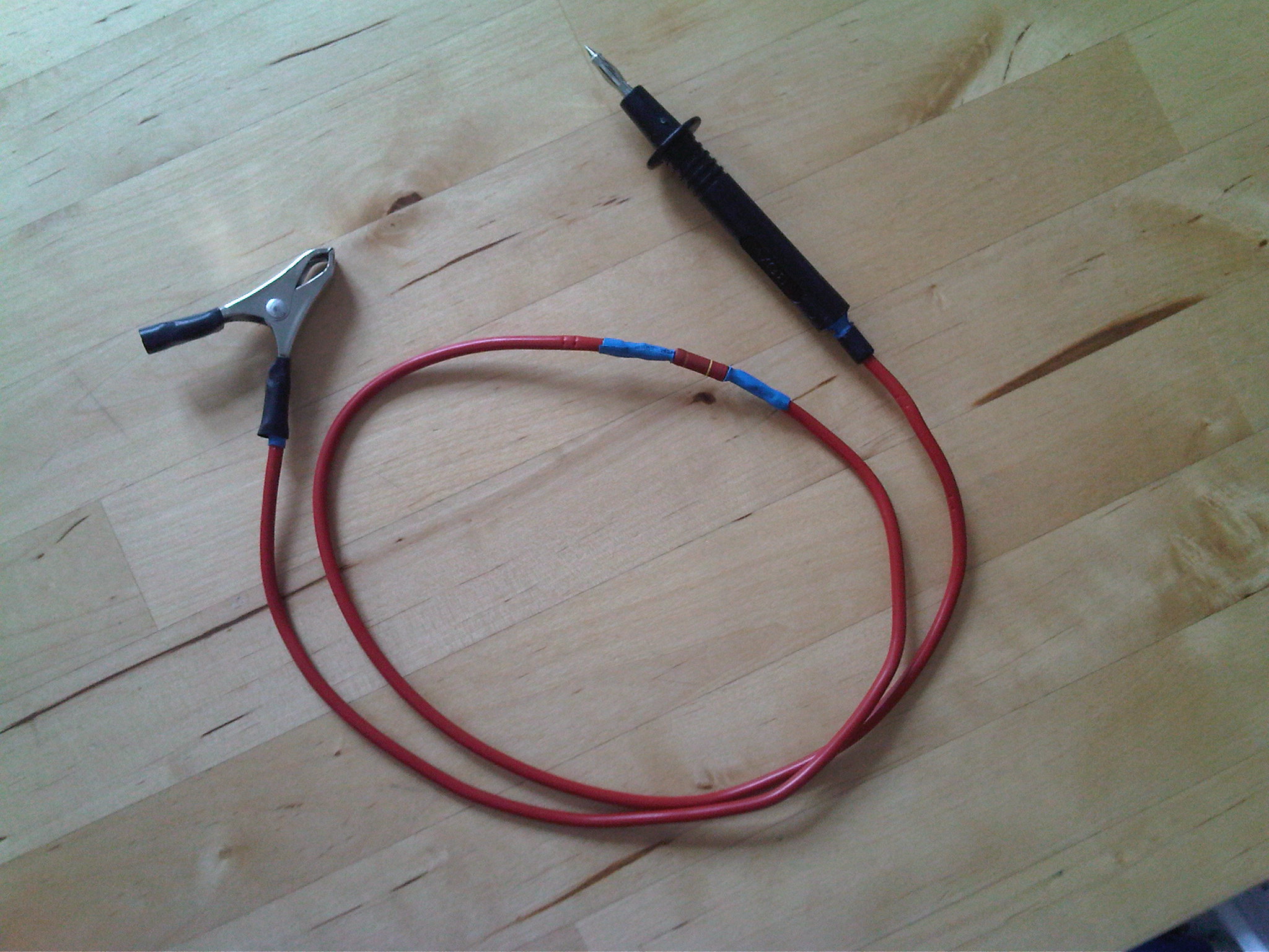 Tu peux utiliser la pointe de touche de ton multimètre sur lequel tu branches la saignée via une pince croco, comme ça tu check la chute de tension en même temps.