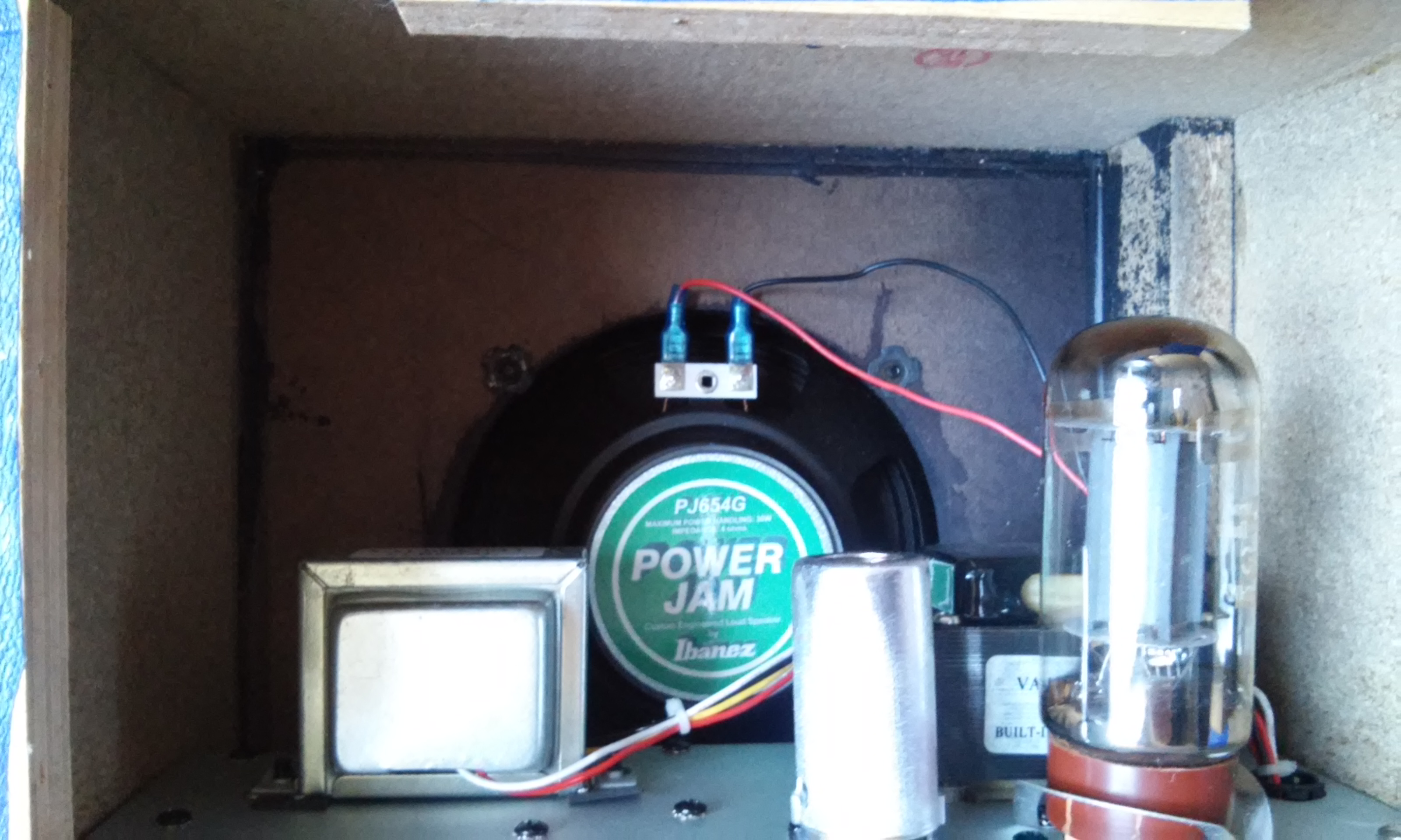 Ca ne se voit pas sur les photos mais certaines découpes (dessous ou sur les bords) sont pas terribles. Quant au grillcloth, il est un peu gondolé. Je crois que j'ai un petit côté perfectionniste :? Il reste encore faire la face avant (la face arrière est presque prête), les trous pour les jacks, un peu de soudure, etc. Pas sûr d'avoir fini d'ici noël :mrgreen: