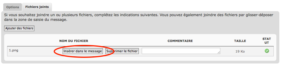 Ensuite, il faut cliquer sur le bouton "Insérer dans le message" et hop !