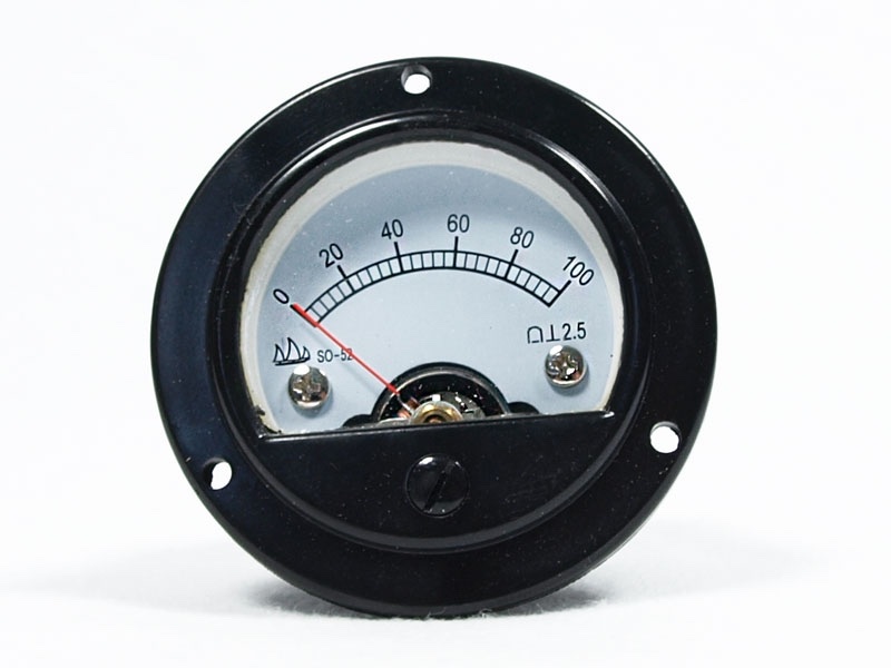 Il y a fort longtemps, sans trop d'idée en tête mais séduit par le look du bidule, j'avais acheté ce "Panel Meter 100 mV DC, round" chez TT (https://www.tube-town.net/ttstore/Parts ... :5813.html)