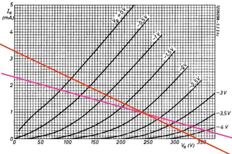 Ça correspond du coup à une charge reflétée au primaire de 336kΩ, soit 168kΩ par anode, qui offre une linéarité assez correcte au point de fonctionnement choisi (235V d'alim, Ugk de l'ordre de -2V).