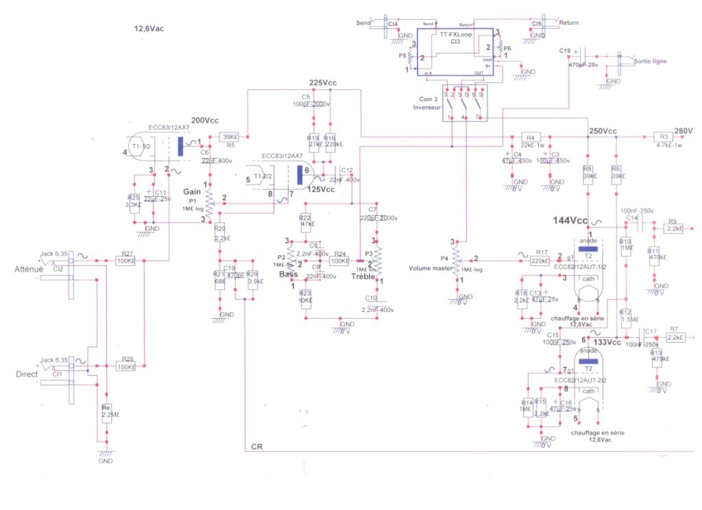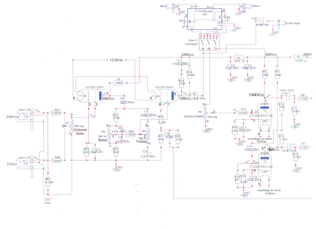 En pièces jointes mon schéma modifié (le schéma d'origine ,voir 'guitare passion' )(trop volumineux)