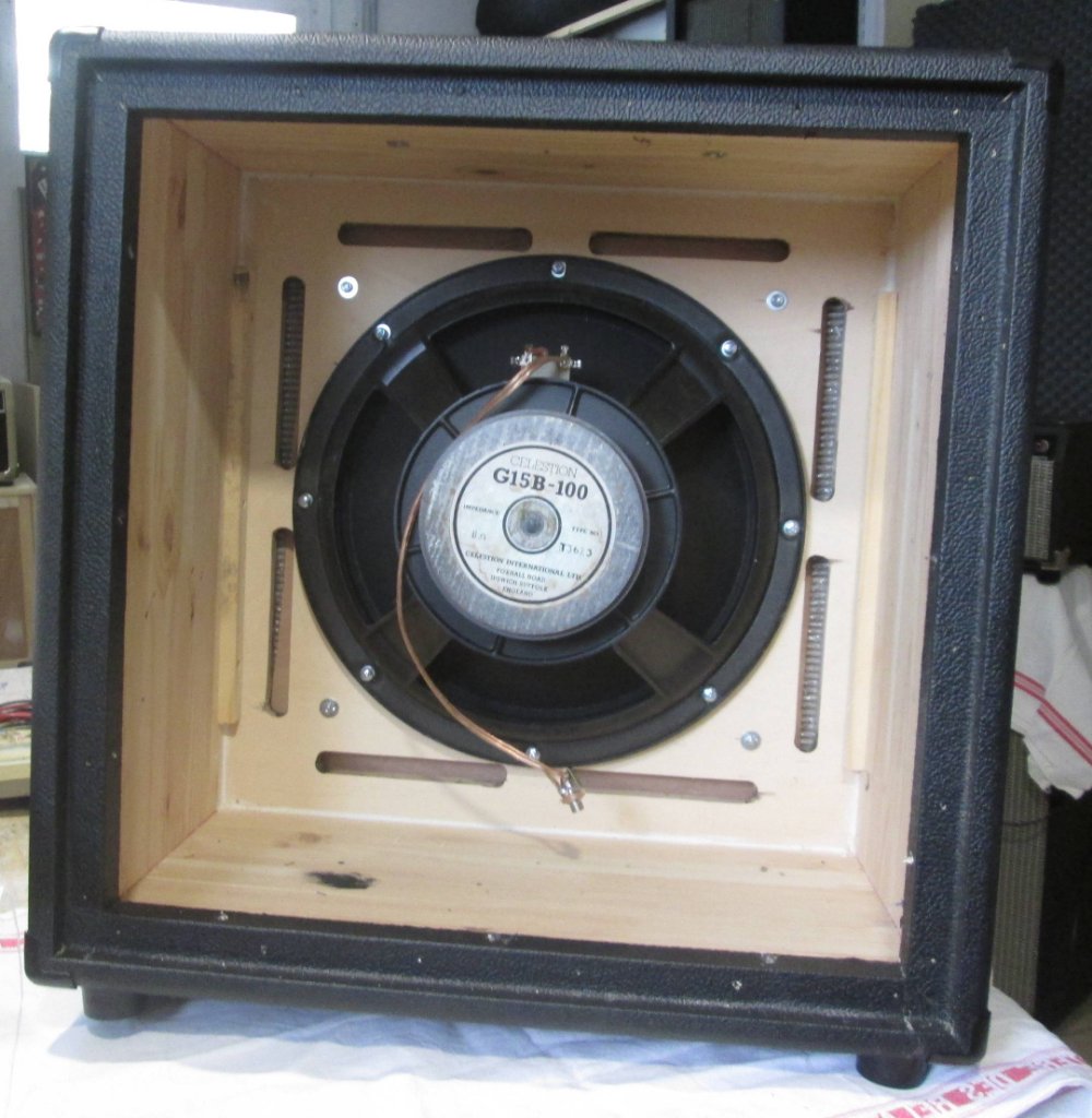 Normalement sur les HP basses il y a un "B" dans la référence. J'ai monté un G15B-100, de même construction, dans un clone de cab Ampeg "double baffle", ça marche très bien. Et il y a assez d'aigus pour la guitare !