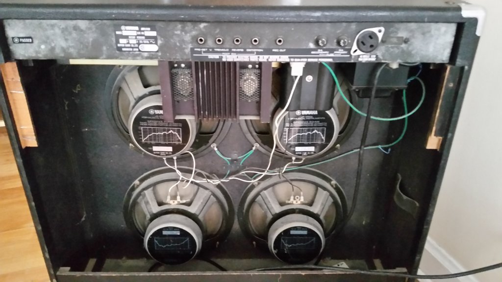 Juste pour vous faire part d'une découverte récente et avoir vos retours éventuels sur la question : j'ai un Yamaha G100 410 en réparation et j'ai découvert à ma grande surprise que les quatre HP avaient leur saladier relié entre eux et ramenés à la masse (au châssis en l'occurrence par un câble vert). Une curiosité qui n'en est peut-être pas une pour vous mais qui, à coup sûr, l'est pour moi! Avez-vous déjà rencontré ce cas de figure et si oui dans quel ampli? Une idée du pourquoi de la chose? Merci!