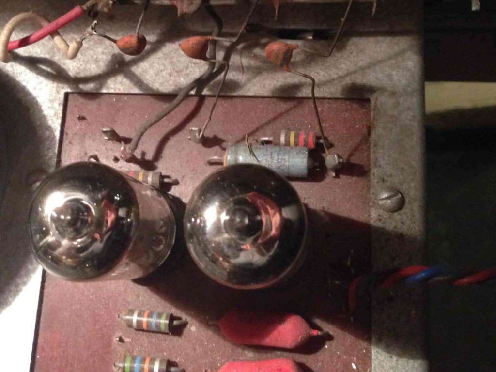 Au passage, je pense qu'il date de 1960. Alvéoles chromées, GZ32, Tonalité avec inductance, transfo déphaseur en // sur le driver. 4xEF86 + 1xECC83 (RCA, miam !)
