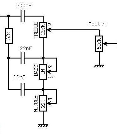3/ Les Marshaux sont pétés de bright cap et treble bleed avant le TS (peut-être même un peu trop), du coup les aigus passent bien et sont plus susceptibles d'être influencés par l'action du potard d'aigu. Sur les 2 modèles que j'ai sous la main de mes amplis, j'ai viré ces bright cap et treble bleed, perso j'aime bien mais on me dit souvent que mes amplis sonnent trop aigus ... Il me semble que le pot d'aigus joue sur les 10kHz, s'il n'y a pas de signal à cette fréquence ben on n'entend pas trop l'effet du pot d'aigus (je peux me gourer)