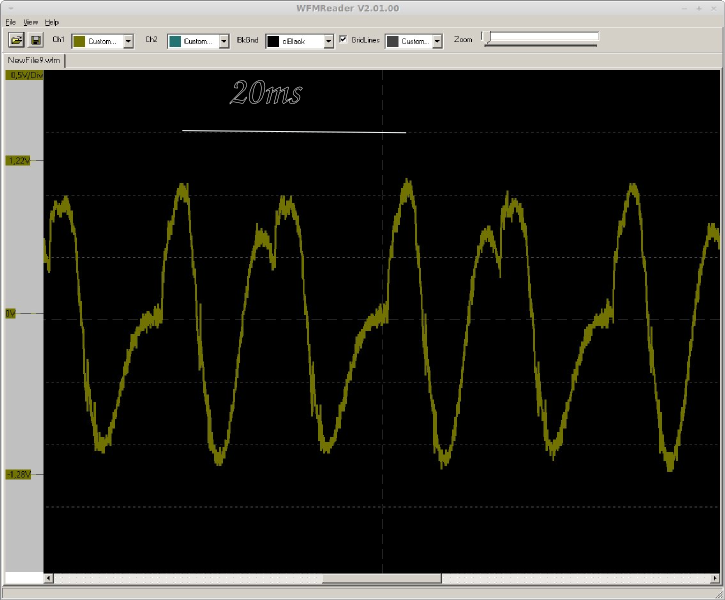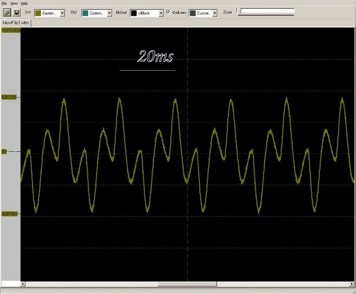 Au risque de paraitre un peu lourd louphil (j'insiste encore mais il faut que tu ais bien conscience que le plus important pour pouvoir t'aider à diagnostiquer ta panne est de connaitre la fréquence de ton hum / buzz), dans les 2 images ci dessous, tu nous dis que la base de temps est réglée sur 5ms, et pour toi ces 2 signaux sont à 100Hz, mais si ta base de temps est bien de 5ms sur les 2 images postées, alors le signal visualisé sur la 1ère image est à 50Hz puisque sa période est 2 fois plus longue que celle du signal visualisé sur la 2ème image ... (et sur ta capa de tête, c'est à dire signal de la 2ème image, c'est bien du 100Hz)