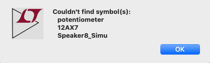 Quand j'ouvre le fichier dans LTspice, un message d'erreur indique qu'il manque des composants:
