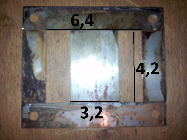 Ca ne colle pas car dans un transfo normalement sur la carcasse, une branche extérieure doit faire la moitié de celle du centre ce qui semble être le cas sur ton image alors que tu as mesuré 3,2 cm pour celle du centre (le noyau) ce qui sous entendrait que chaque branche extérieure ferait donc 1,6 cm donc la largeur de la carcasse devrait dans ce cas faire 6,4 + (1,6 x 2 ) = 9,6 cm.
