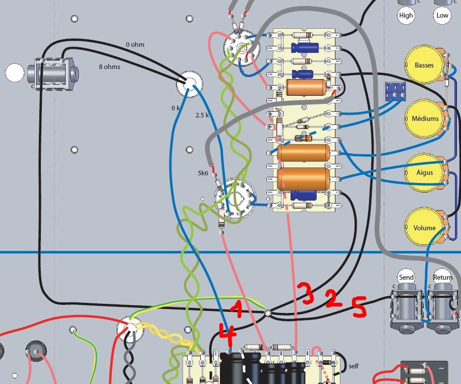 EDIT : j'y pense . Démonte les soudures de la boucle d'effet et câble en direct le curseur du volume sur la grille de V1B. Cette boucle d'effet nous a emm...