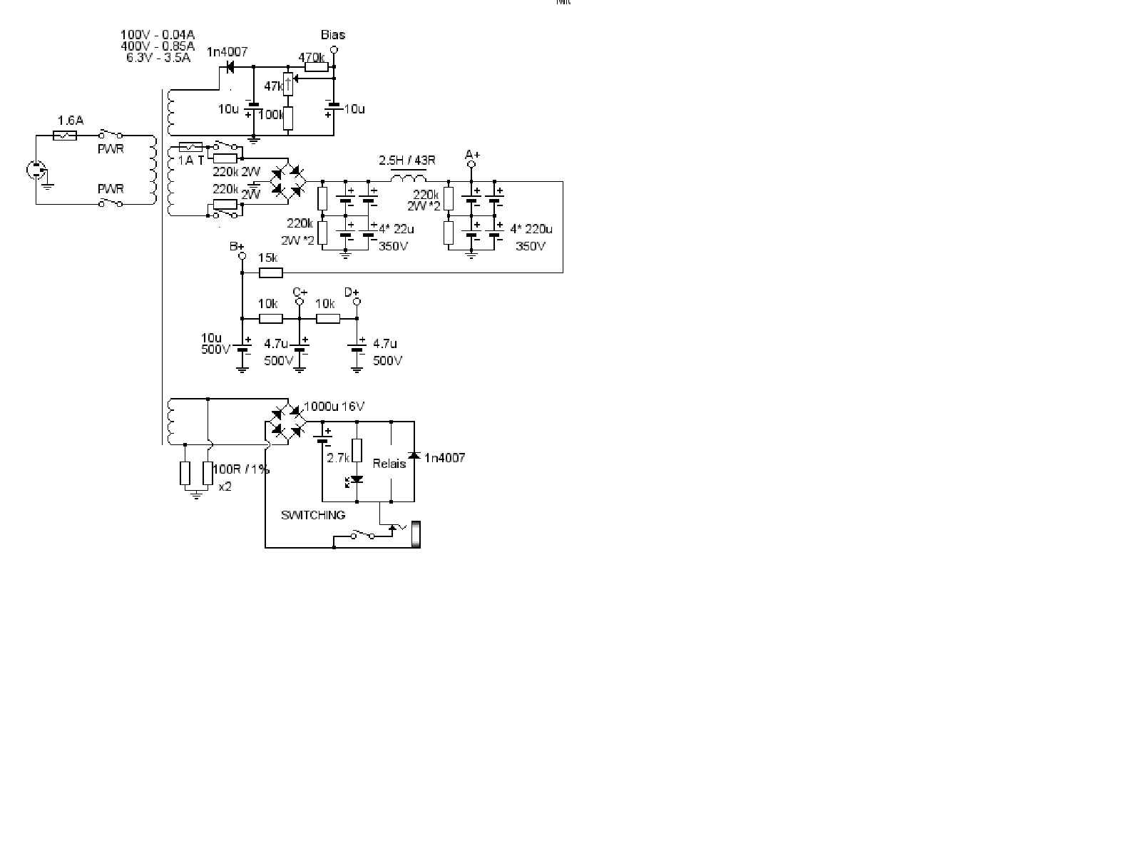 - un enroulement 100V pour le fixed bias