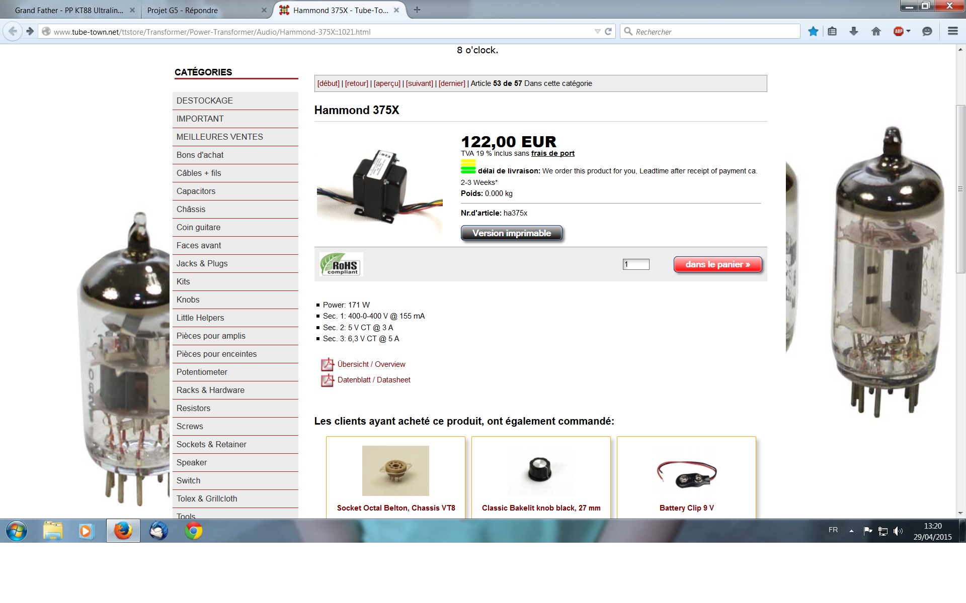 pour le transfo j'ai pigé par contre je n'ai pas encore trouvé un transfo avec les trois enroulements qu'il me faut, j'ai trouvé celui-ci mais bon s'il faut en mettre un autre avec un enroulement en 100 volt c'est pas grave.