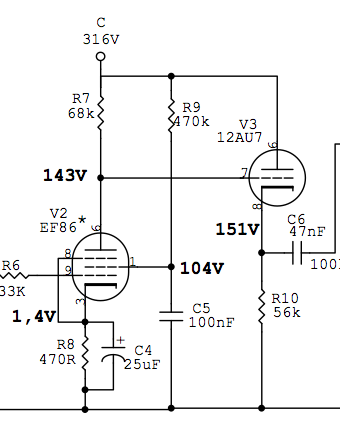 après j'avais une autre idée: substituer le PI long tail par un cathodyne et récupérer une triode pour faire un étage de gain (ou autre chose) entre l'EF86 et le PI (façon G1) mais j'ai peur que ça s'écarte du mon idée de base (je veux du crunch qui tache bien rapeux).