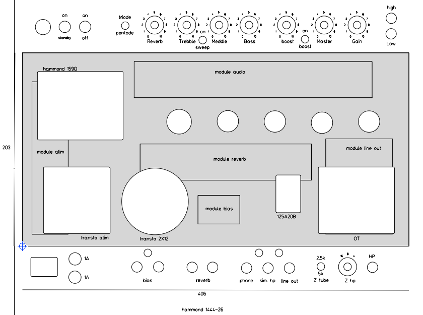 l'idée est de placer le pcb sous l'ot en déportant les jacks et pot.(j'ai corriger l'erreur)
