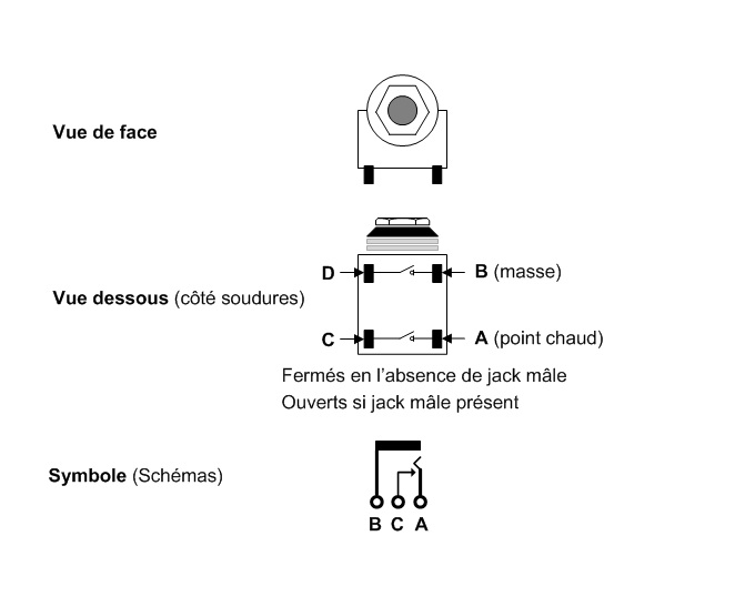 Et pour mémoire, l'équivalent entre le physique et le schématique pour un jack à coupure :