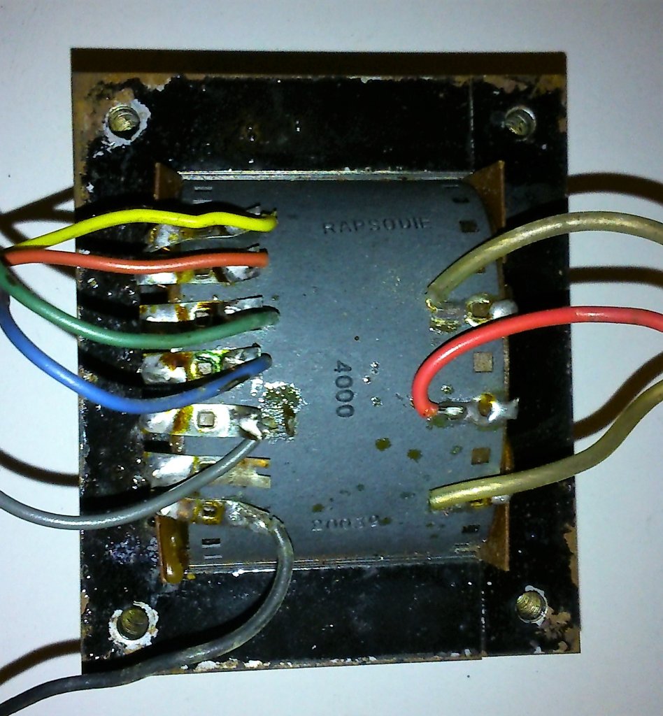 Pour ton OT, entre la topologie du poweramp (2 EL34) et le marquage sur le transfo, je pencherais plutôt pour une impédance totale au primaire de 4k, ce qui donnerait sur les sorties 2.5Ω, 4Ω, 8Ω, 10Ω, 12.5Ω et 16Ω.