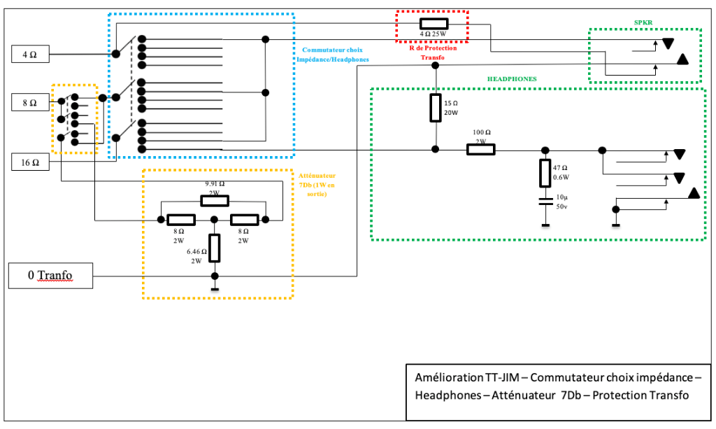 Je souhaite l'améliorer et lui rajouter un commutateur de choix d'impédances, une sortie headphones, une atténuation de 7dB et une protection de sortie de transfo.
