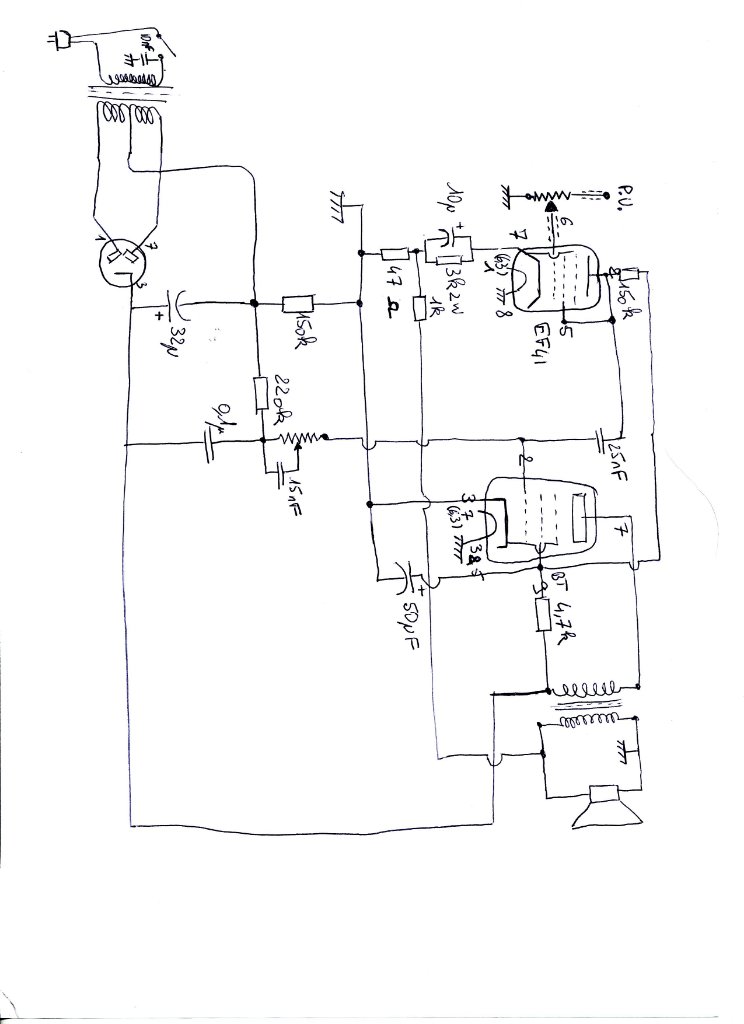 Voici le schéma rapide de l'ampli de l'électrophone,EDIT Le bon schema un peu plus bas, car il y avait des erreurs de recopie dans celui de ce post.