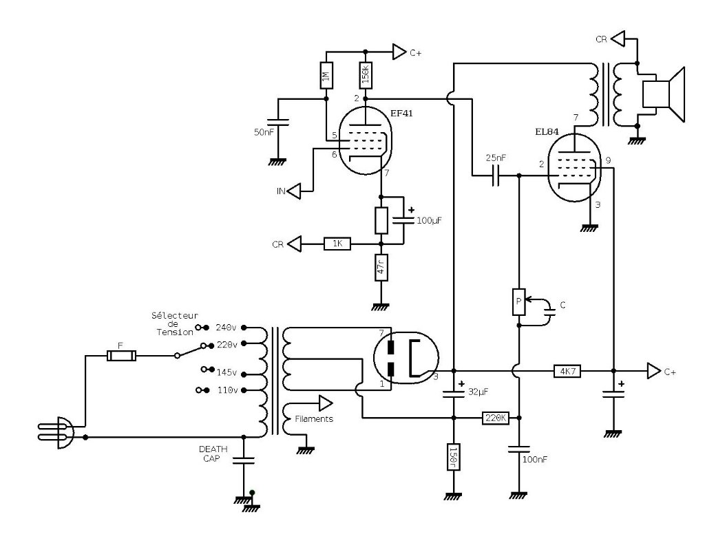 2 Je compte raccorder le préampli d'un schéma trouvé sur le site de Christian (sepelliere44) peut on directement virer la partie filtre RIAA et tonalité (220k + pot+ 15nF + 0.1µ à droite de la capa de 32µ) et attaquer entrer le signal au Pin 2 de l'EL84 ? 3 Si oui, est ce que je branche le drain de la 12AX7 à la masse comme la broche 3 de lEL84 ?