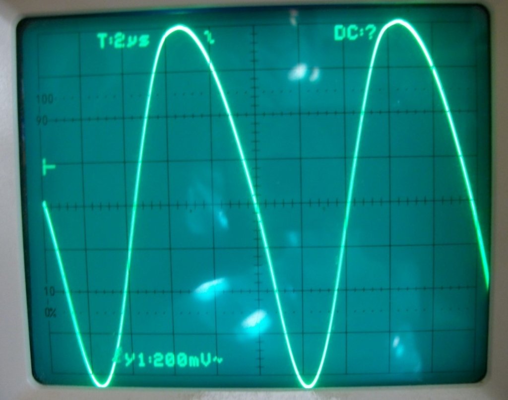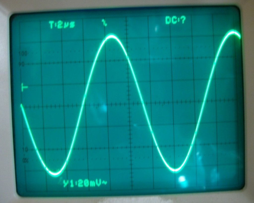 Pourquoi voit-on aussi un signal carré sur le 2eme oscillogramme en plus de la sinusoïde ? Ton oscillation est à quelle fréquence ? On dirait le double soit 2 kHz si on en croit l'indication T=200µs sur les deux photos...