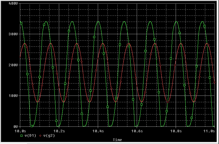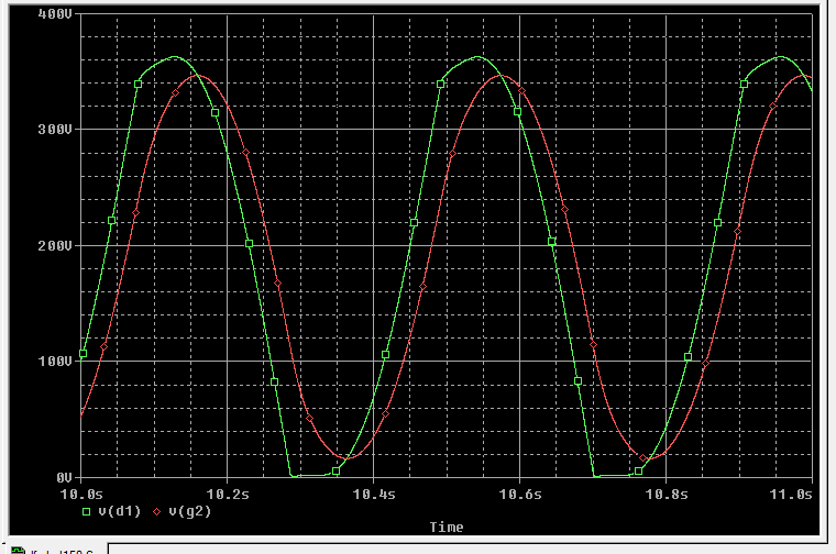 Une simulation à 5 Hz sur LTSpice donne le résultat suivant :