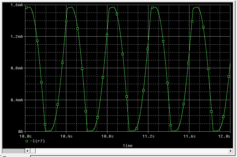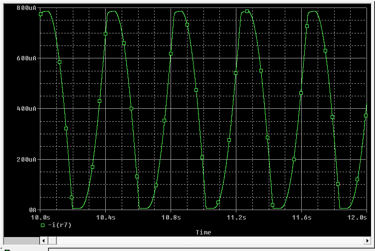 On voit que le sinus est de forme acceptable et que la plage de courant s'étend de 90 µA à 450 µA à peu près soit en traçant les abscisses :