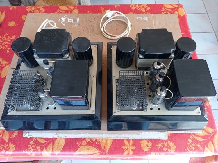 Tubes PL509 / 519 en puissance, 1 x ECC808, 3 x PCL84 et 1 x PCL82 en préamp...