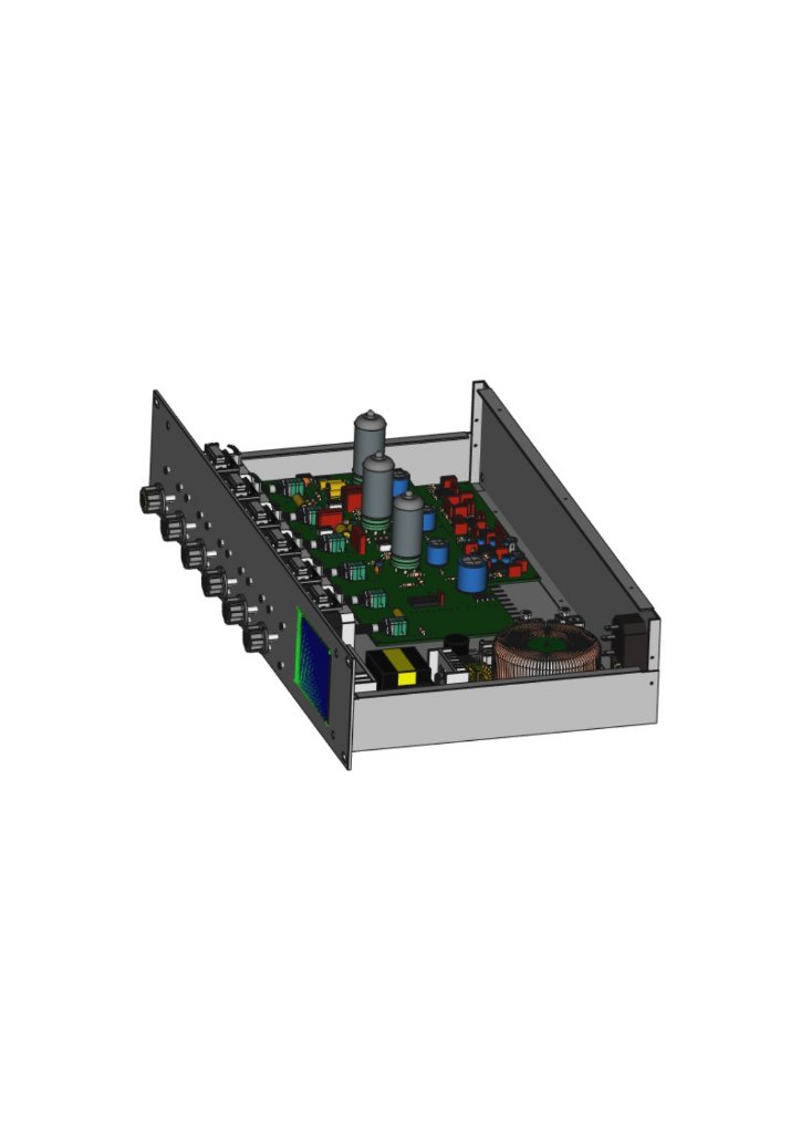 J'ai eu envie de concevoir un préampli à tube sous la forme d'un rack 19" d'une hauteur de 2U (pour que les tubes soient verticaux). Ce format m'a attiré car modulable, robuste, pro et j'avais déjà dans l'idée de faire un power amp dans le même format par la suite.