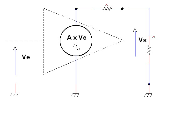 Si l’on adjoint une impédance de charge en sortie du montage nous obtenons :