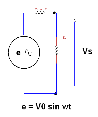 Nous voyons apparaître une tension Eth = RN IN suivie d’un diviseur de tension ZL / (RN + ZL) dont le schéma serait :